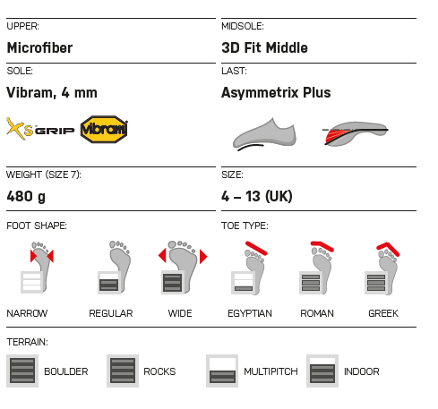 - High precision on tiny footholds and edges - Engineered for technical climbing